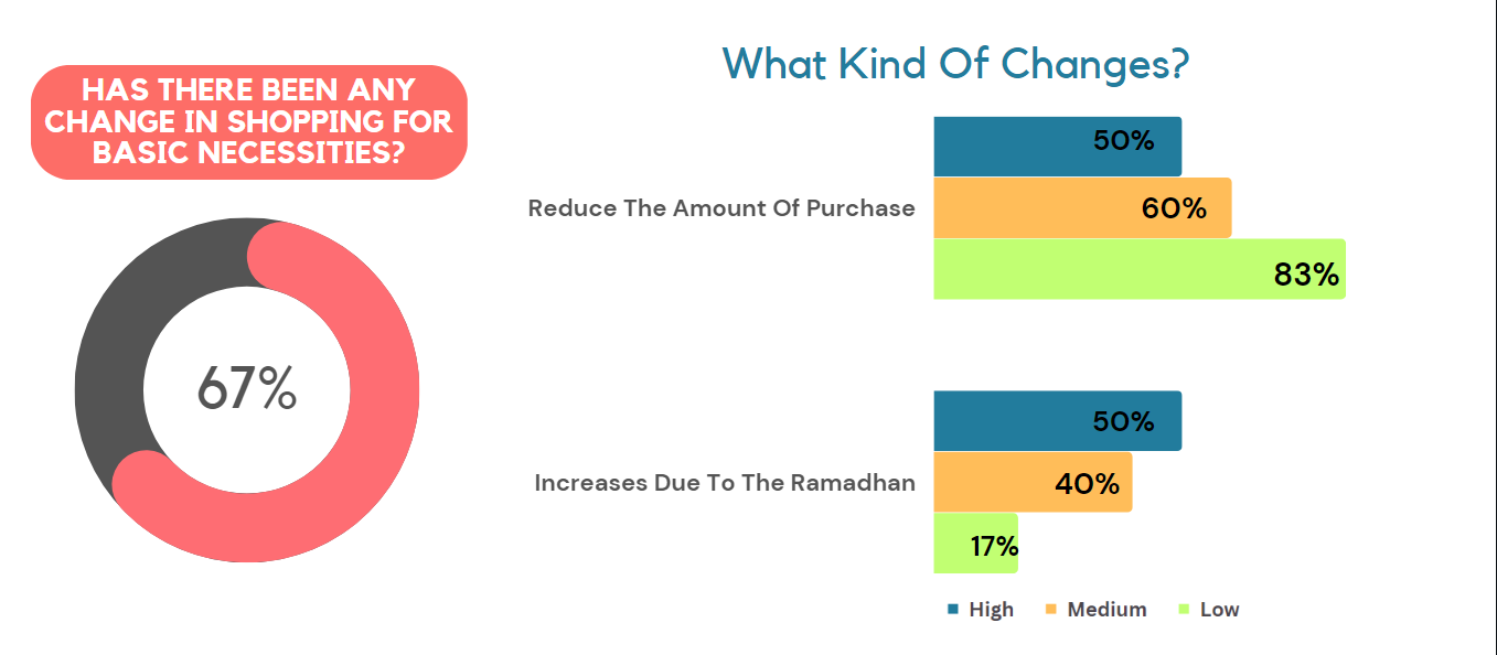 Consumers may take several measures to reduce their essential needs, including reducing the quantity of high-category products purchased. For the medium category, consumers may prefer to seek out budget-friendly brands as a way to reduce their expenses, while those in the low segement may choose to seek out affordable places to purchase their essential items.