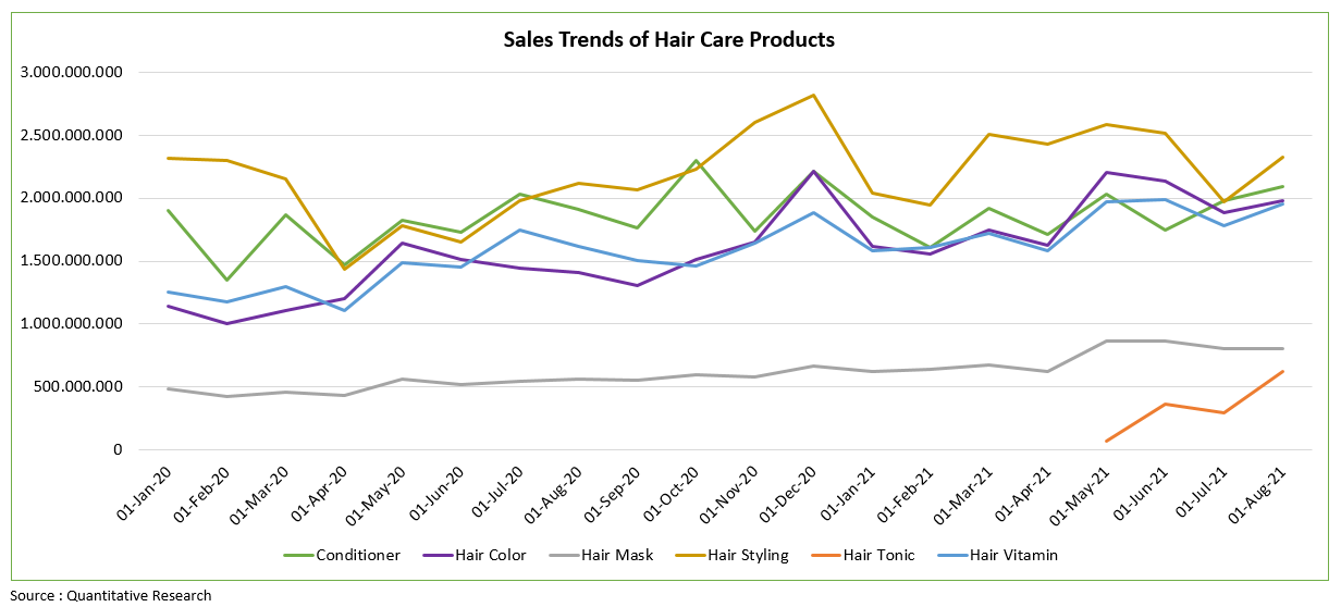 Nowadays, shoppers still consider proximity in terms of choosing their shopping destination. It is not only for the main groceries products but also for other complimentary products, including hair care products. The complementary hair care products besides shampoo, such as conditioners and hair vitamins, experience growth in the minimarket. The top 4 hair care categories that sell the most in minimarkets are hair styling, hair conditioner, hair color, and hair vitamins.