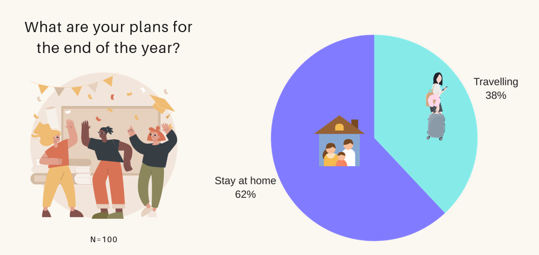 The graph below shows that 62% of consumers prefer to stay at home to celebrate Christmas/New Year. While the remaining 38% of consumers prefer traveling.