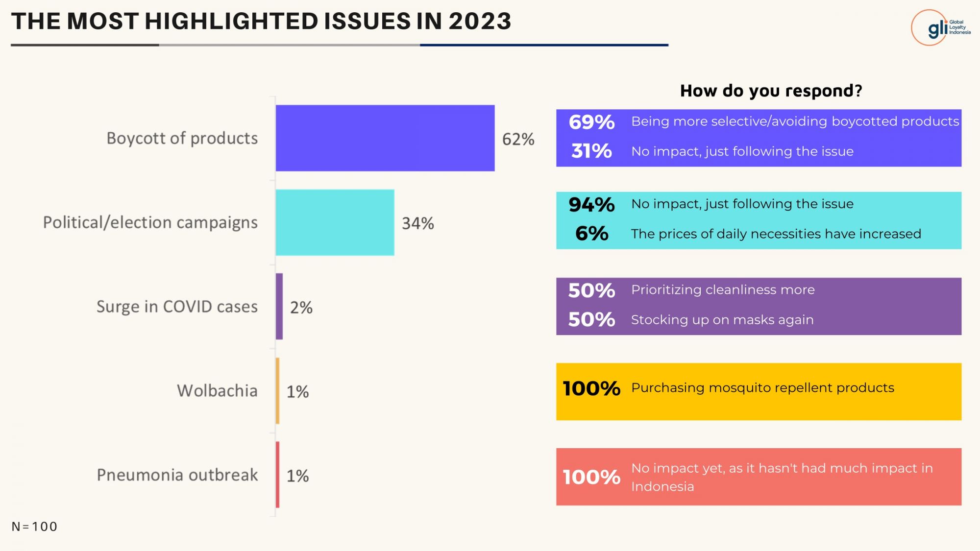 Boycotting products has become the most highlighted issue in 2023. The majority of consumers are more selective/avoiding boycotted products.