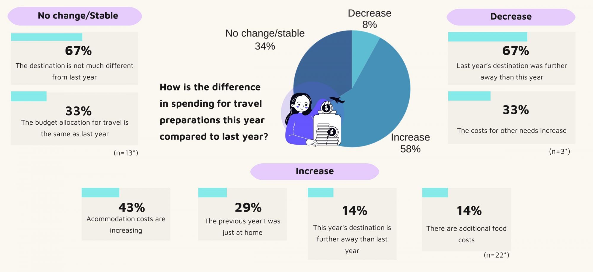 The majority of consumers allocated a higher travel budget this year than last year because accommodation costs such as villa/hotel rentals and plane tickets increased.