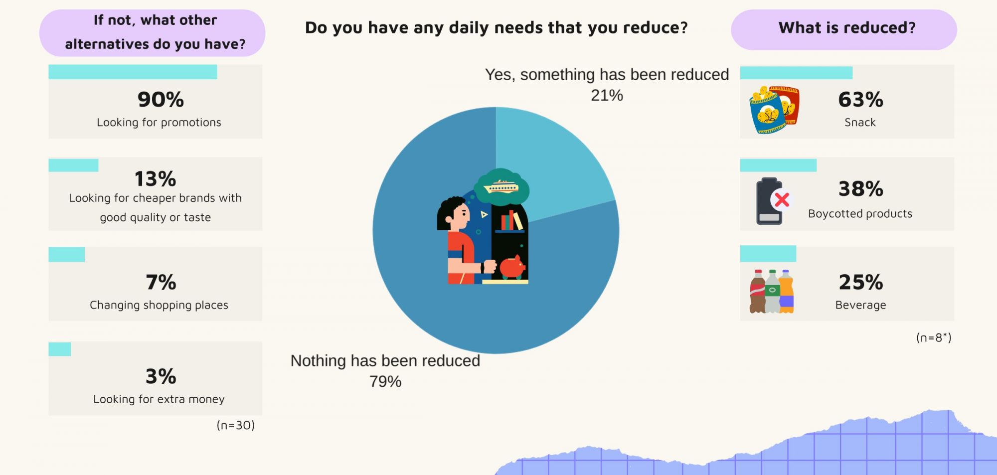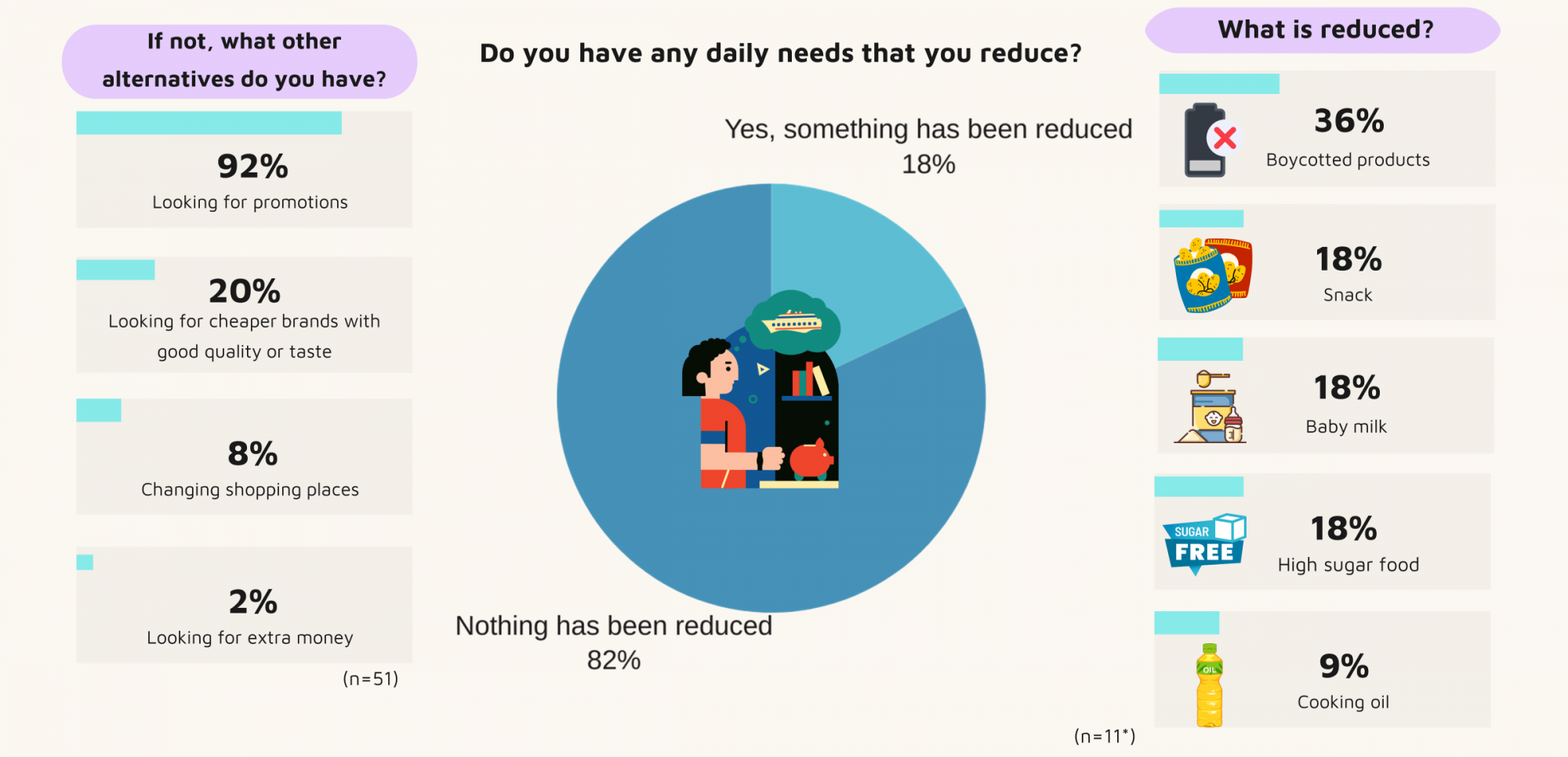The majority of consumers do not reduce their daily needs. However, they look for other alternatives by looking for promotions.