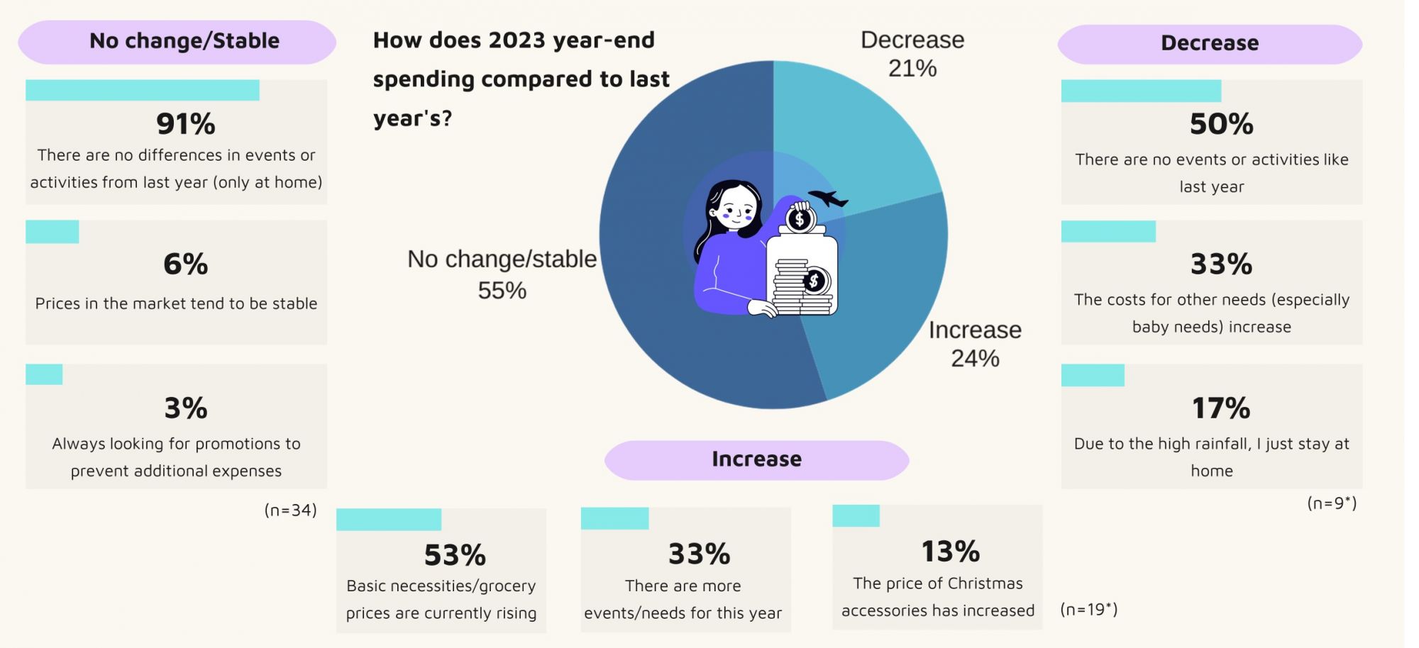 The majority of consumers prefer offline channels, especially in minimarkets, to purchase necessities/products for celebrating Christmas/ New Year at home. The primary considerations are price and brand, and most of them become aware of the products through storefronts.
