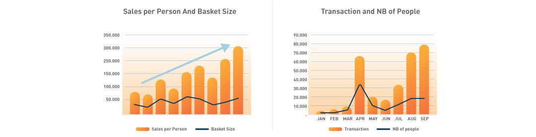 Still related to people mobility, due to PSBB implementation, something positive happened in terms of online channel. It also happened in minimarkets, where online shopping was increased asignificantly during this Covid-19 pandemic situation. Either the number of people that had online shopping or their transactions were growing significantly over last few months. In September, the minimarket online sales reached the peak, and it was resulting more than 4x of sales compared to January (before PSBB).