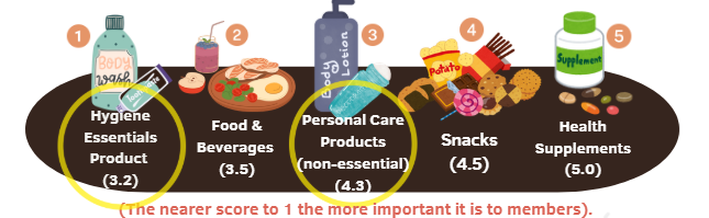 Maintaining personal grooming is on top of men’s priority, as reflected by the relatively high score for hygiene essentials items (soap, shampoo, toothpaste) at 3.2, and personal care products (non-essentials) ranking as the third priority with a score of 4.3 in their shopping list.