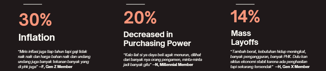 Generation X (44-57 y.o.), feel satisfied about their income; with an average monthly earnings between IDR 7.5 million and IDR 10 million. Meanwhile, the younger generations—Generation Z (18-27 y.o.) and Millennials (28-43 y.o.)—are left feeling some challenges, with their earnings averaging on IDR 3 million to IDR 5 million per month.