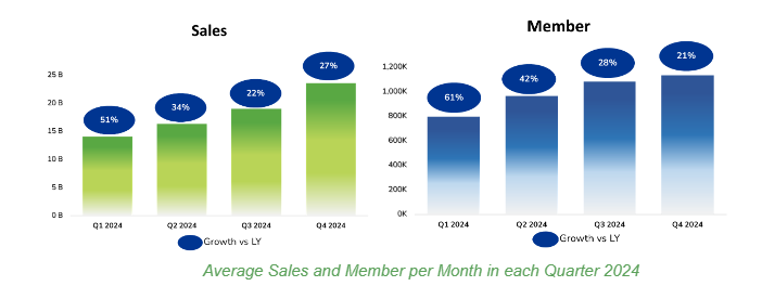 Looking at the healthy food sales, growth, and customer penetration each end year, there has been an increase in sales and customer penetration for healthy products in 2024. This trend reflects growing public enthusiasm for adopting a healthier lifestyle.
