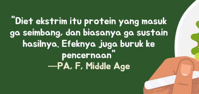There has been a significant increase in the adoption of a healthy diet lifestyle among the Indonesian population, which has risen notably since the pandemic (2020-2021), as people have become more aware of the importance of maintaining physical health and mental wellness. This trend of embracing a healthy lifestyle continues to grow each year across nearly all age categories, including teenagers, adults, and middle-aged individuals.
