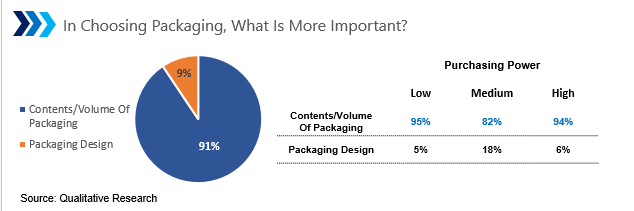 In choosing packaging, the majority of consumers consider the content/volume of the packaging more than the packaging design.