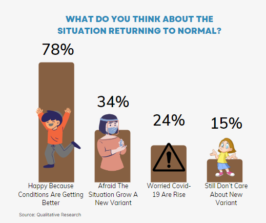 And also, with activities returning to normal and variant cases decreasing, 78% of people are happy because the current situation is getting better.