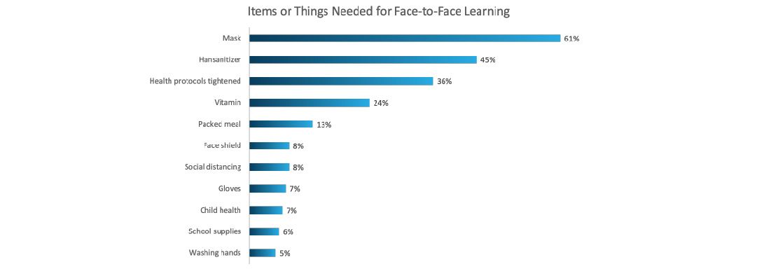 Furthermore, to prepare their children to return to face-to-face learning at schools, what items do parents need the most? The survey showed that masks and hand sanitizer are the most needed items.