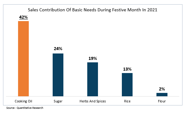 Furthermore, in the category of basic needs, sales of cooking oil have the highest contribution (42%). This means that cooking oil has an essential role in daily needs during Ramadhan.