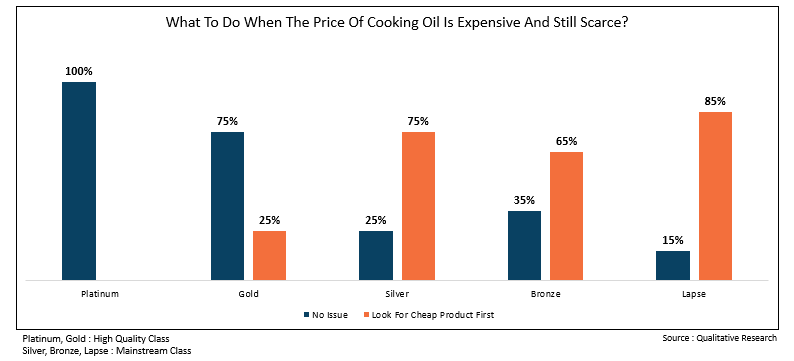 And if we break down by member segmentation, platinum and gold members don't hesitate to buy the cooking oil at an expensive price. In contrast to the silver, bronze, and lapse members, they will look for another substitute products that are affordable.