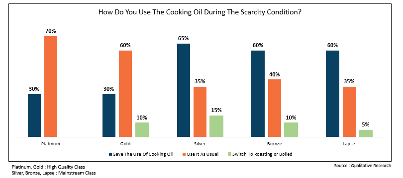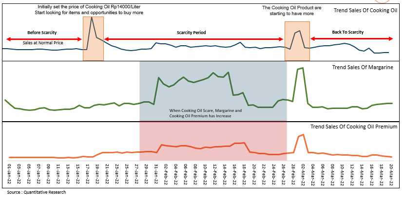 Many people started to switch to substitute products such as margarine and premium cooking oil. The sales of margarine and premium cooking oil increased during the scarcity period.