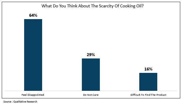 More specifically about respondents' opinion, 64% of respondents feel disappointed because the cooking oil’s price increased significantly and it’s hard to find the product in the market. Meanwhile, 29% of other respondents felt resigned to the current situation.
