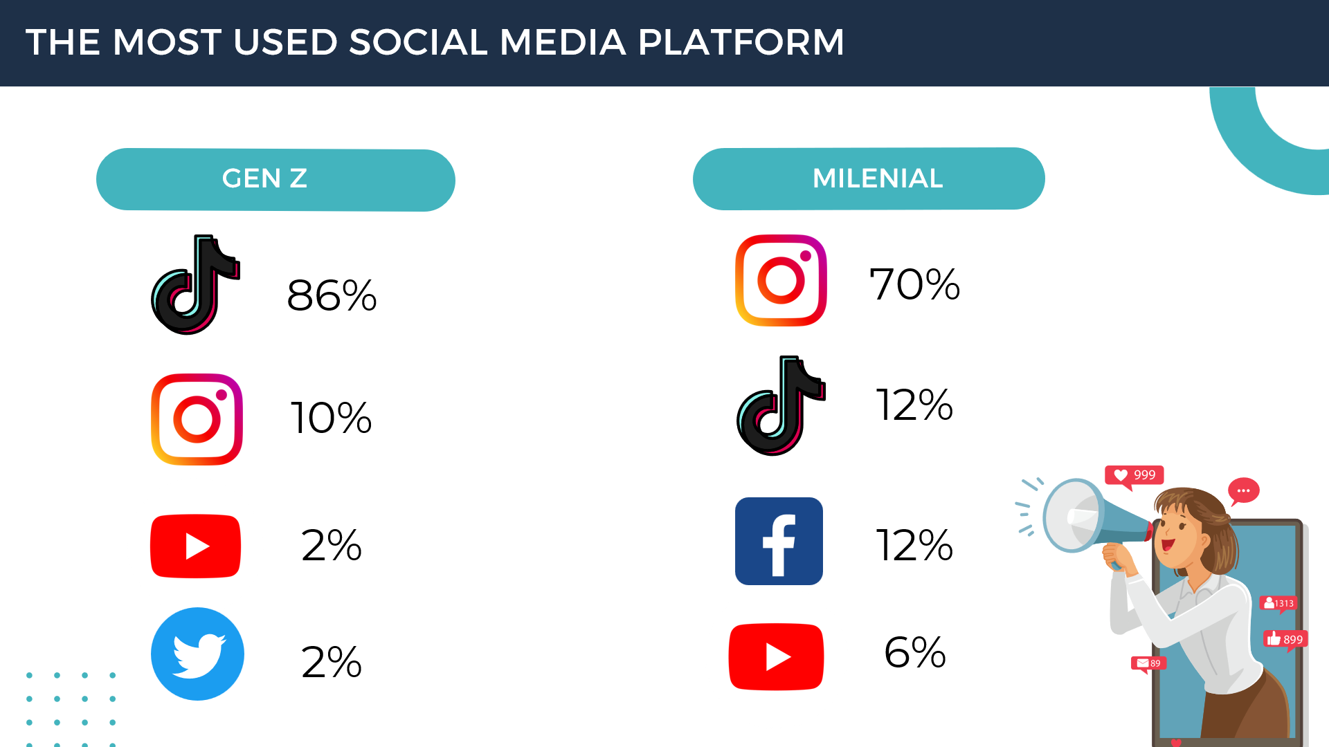 Gen Z uses the social media platform TikTok more, while millennials use Instagram more.