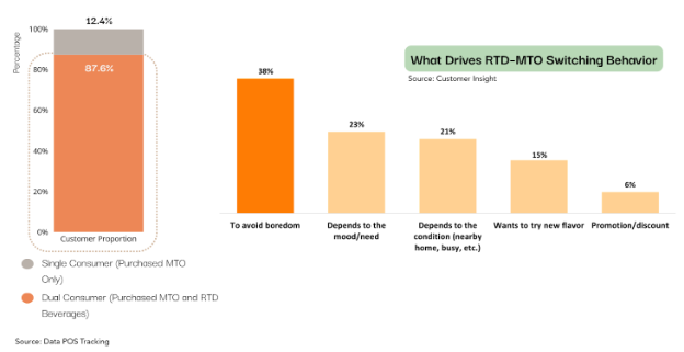 If we look at MTO’s consumer behavior toward RTD consumption, 87.6% of MTO's consumers are categorized as Dual Consumer, which means they purchased both MTO and RTD.