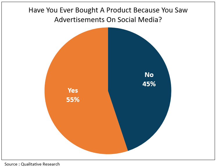 More than half of respondents (55%) said they had bought a product because they saw advertisements on social media. Interestingly, if we look further, they buy the product because they currently need it and find it at an affordable price. This is one of the reasons why social media ads are considered effective because brands can target the right audience with relevant content at the right time. On top of targeting specific audiences, brands can also save the historical data and use it for future campaigns or re-targeting to create consistent and future success.