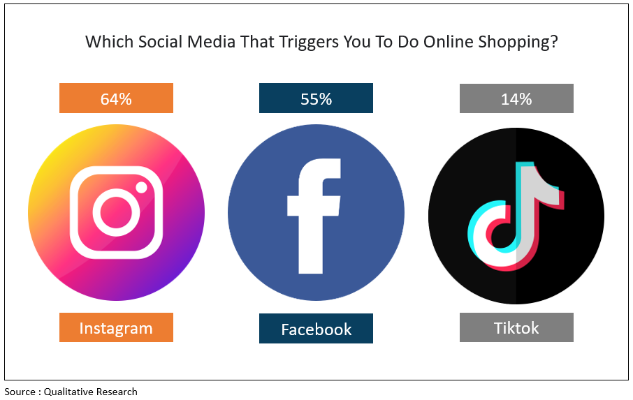 However, with so many social media platforms today, in general, Instagram is the most triggering platform for respondents to do online shopping, based on the survey.