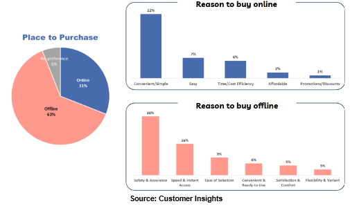 The majority prefer buying health products offline due to the assurance of product quality that meets their needs, while some still seek the convenience of purchasing online.