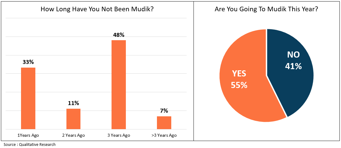 Speaking about mudik as one of the traditions during Ramadan, many respondents said they had not returned to their hometown for three years because of the pandemic situation, the last time they returned to their hometown was in 2019, before the pandemic attack. This year, most of them (55%) plan to mudik because traveling is easier nowadays because the government has announced that domestic travelers no longer need to show the PCR test or rapid antigen test results if they have received the booster dose of vaccination.