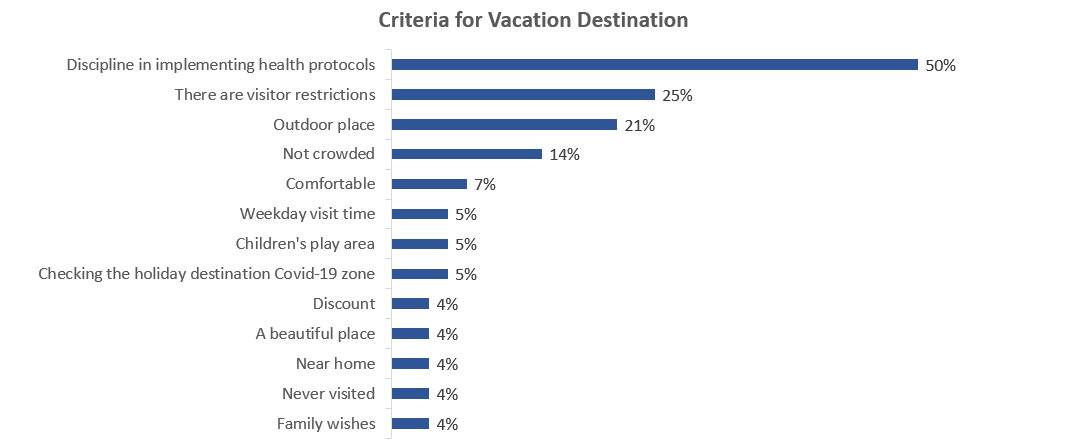We can see clearly that there is a desire to be able to take a vacation during a pandemic, but the vacation destination must be able to adjust to the current pandemic situation because people also prefer to have a safe place that implements strict health protocols.
