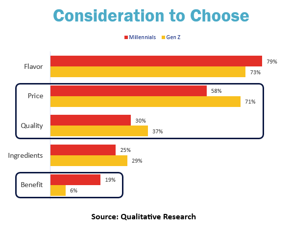 Flavor is a primary consideration when choosing ready-to-drink (RTD) beverages. Gen Z is more sensitive to price and quality, while Millennials are more focused on the benefits offered by the product.
